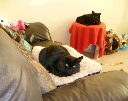 I Doug and Max successfully made the 10,000 mile trip from Manchester to Melbourne at the end of 2011 and have never looked back. They looked totally unfazed upon arrival after their 22 hour flight and coped surprisingly well in quarantine for 30 days where they had their own private area in isolation – not bad for cats who others might have written off or ignored! They now are enjoying lapping up the sunshine and have just welcomed their new Australian brother Erick who has been vaccinated against FIV (something which is pretty common here in Oz as the FIV problem was even worse than the UK) and can co-exist with them happily and safely. Please do not overlook a beautiful cat just because it might have FIV – of course do your research and keep informed to be the best cat parent you can but their condition should merely be an aside. Our lives have been changed for the better by having Doug and Max in our family and I like to think that we have helped to give them a second chance at life! |